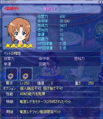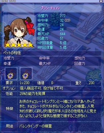 そして後で調べたら魔法系統だと思っていたオヤシロリカがガンナー向きだと知って己の迂闊さを少し呪いました。装備がアクセサリと防具しか使えそうにないのでスルーしてしまいましたが、ペット獲得のために購入しても良かったかも知れません。さらにもともとショコラを導入し始めたのは去年の10月半ばでそこまで長く稼働させておりませんでしたので、伸び幅を考えるとまだしばらく使っておいて次のガンナー用ペットを待っても良かったのかも知れません。