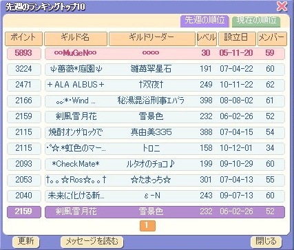表題のとおり、週間ギルドランキング1月3週度5位につきました。