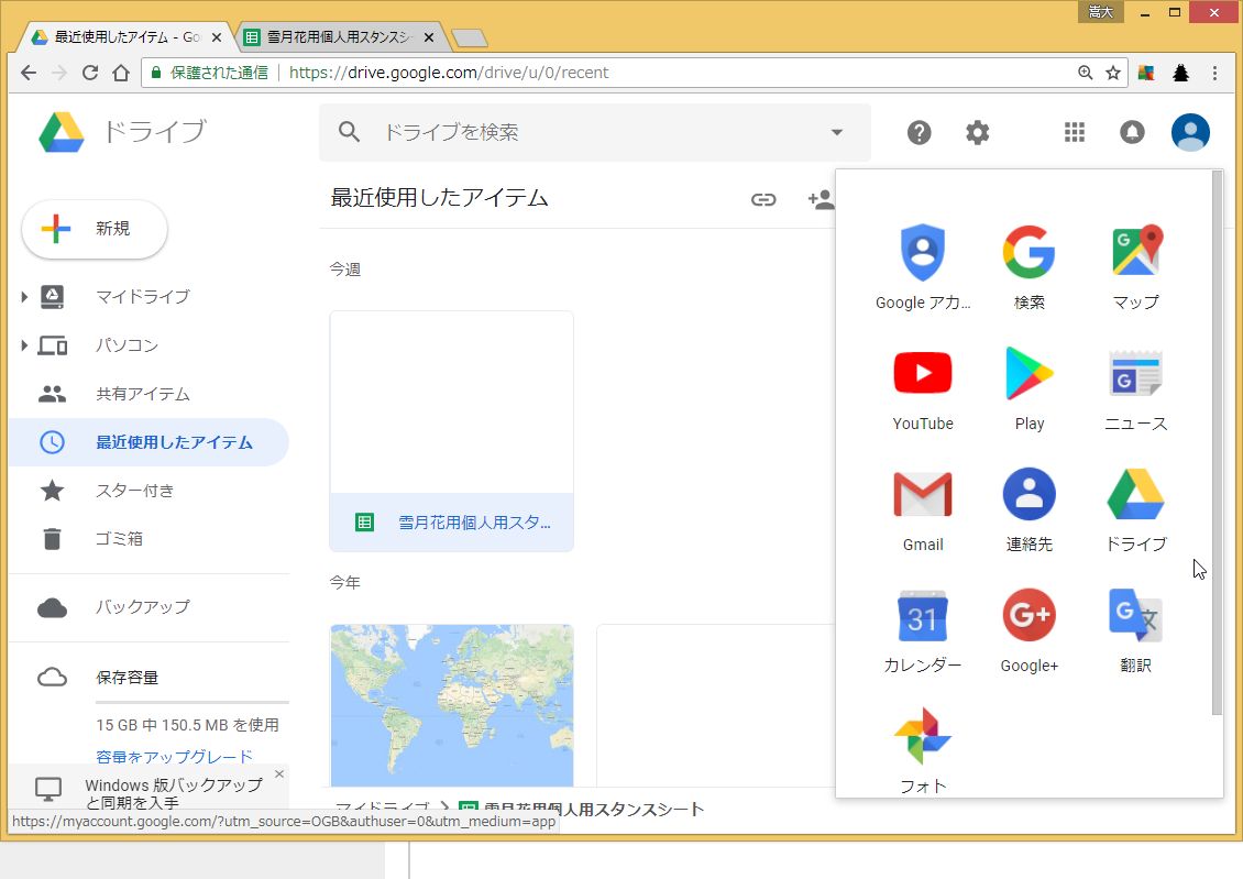 2.メニューボタンをクリックし、リストから「ドライブ」を選択する。