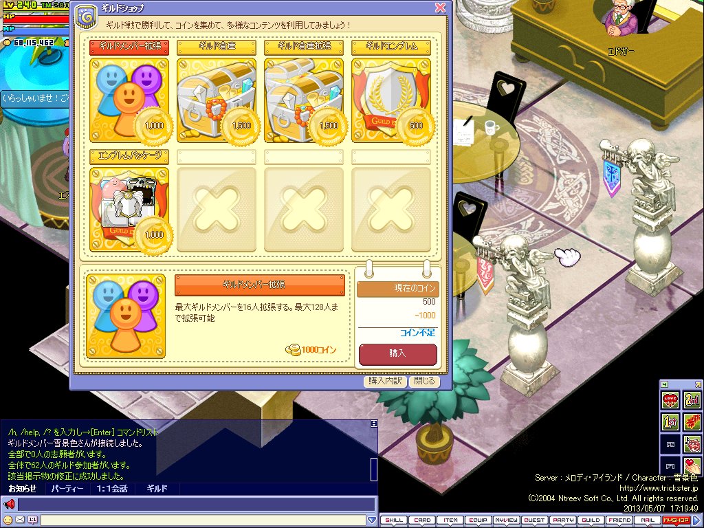 無事達成され、本日報償であるギルドコイン500Pがギルドショップに振り込まれていることを確認しました。