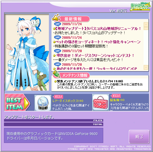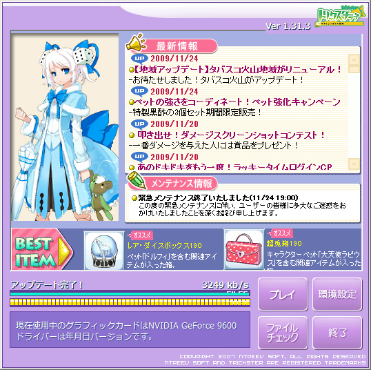 無事にアップデートが完了しましたので、スタートでいよいよゲームへのログインです。